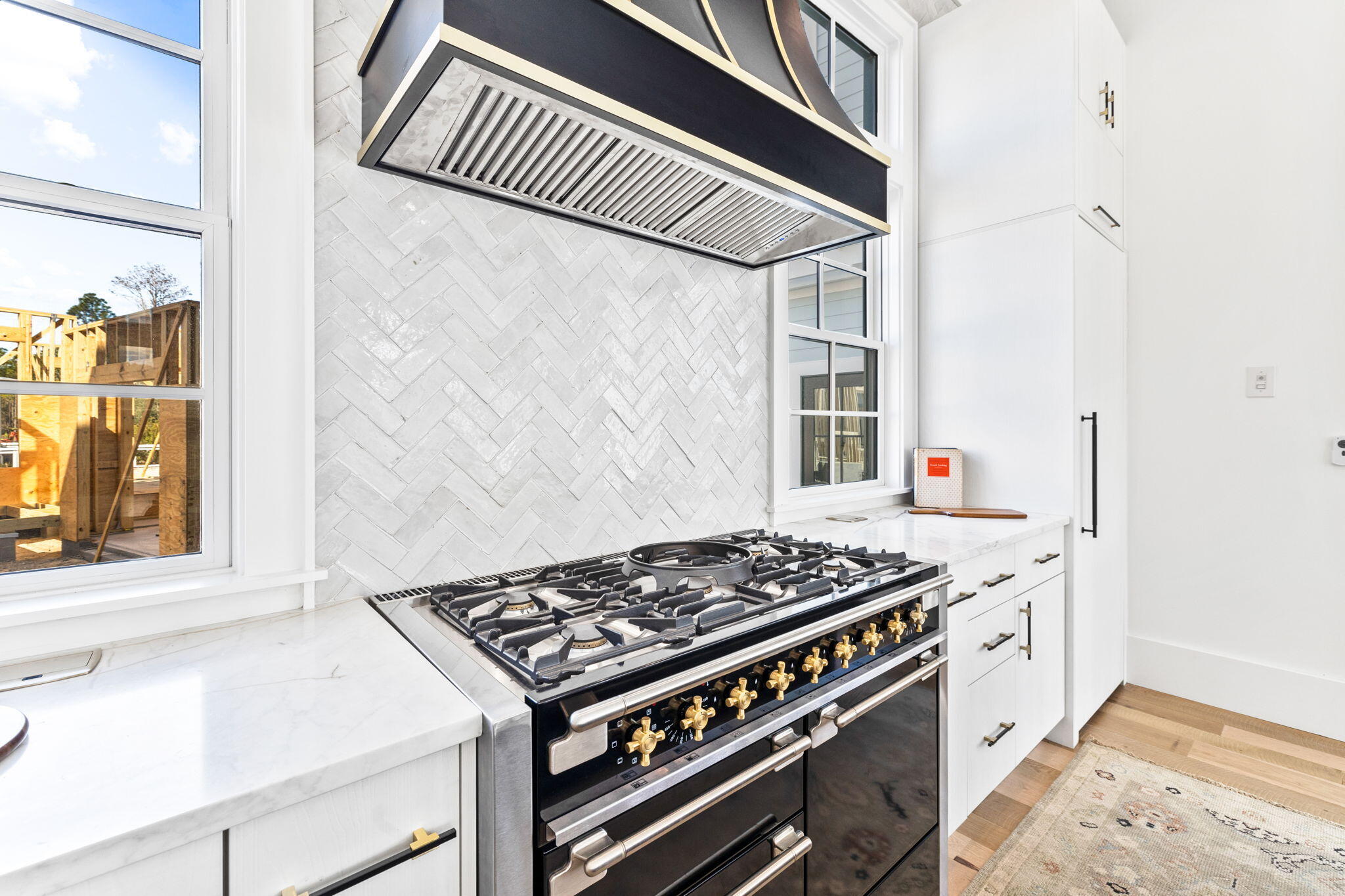 Throughout the entire house, zellige tile adds an artisanal touch, complementing the warmth of reclaimed oak floors that flow effortlessly from room to room. No detail has been spared in creating a space that radiates timeless elegance and comfort.